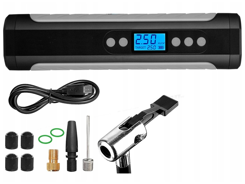 Bateriový kompresor pro jízdní kolo, auto, elektrický 10 bar LCD