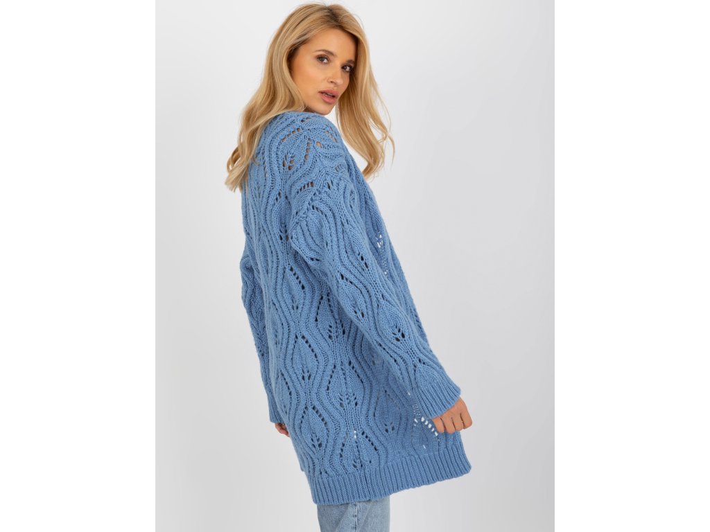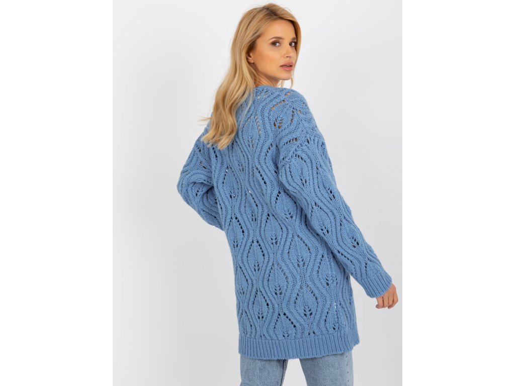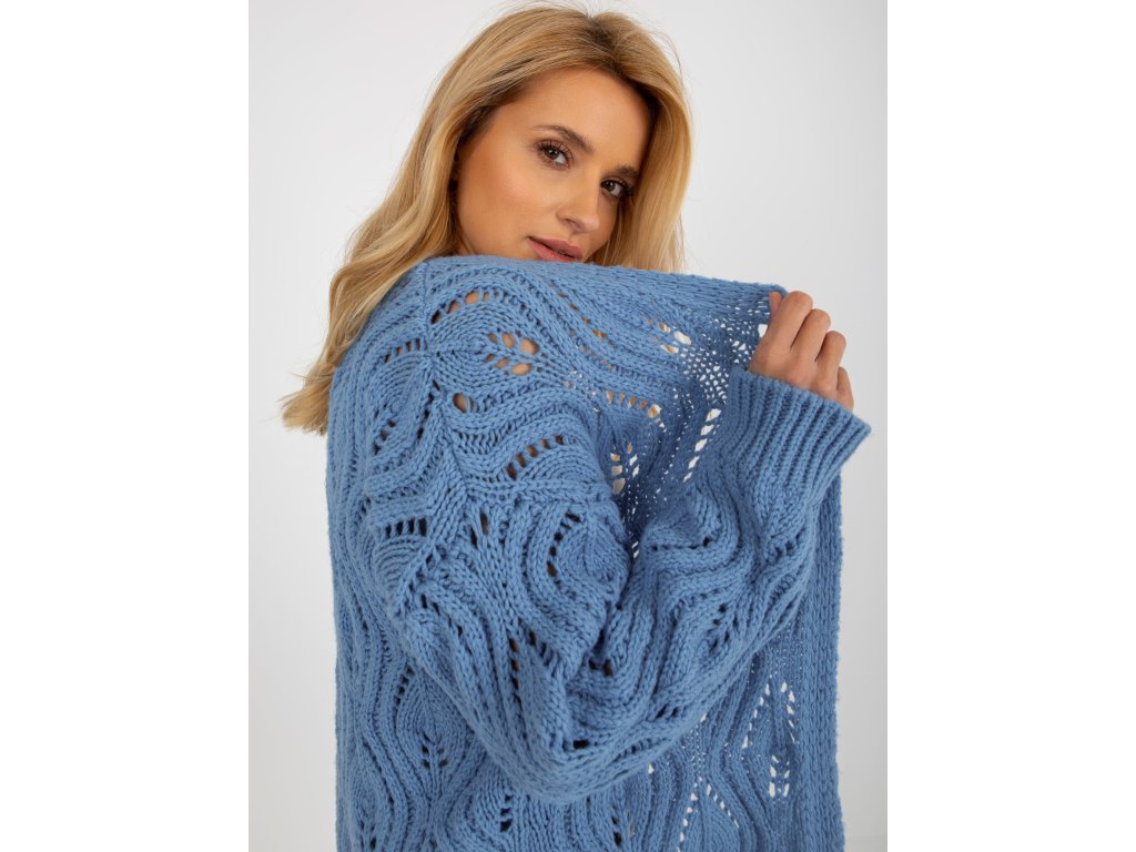 Modrý prolamovaný svetr s příměsí vlny