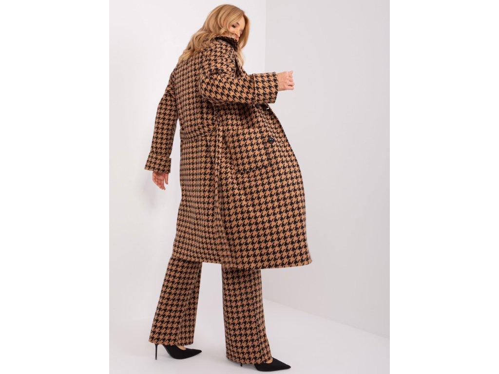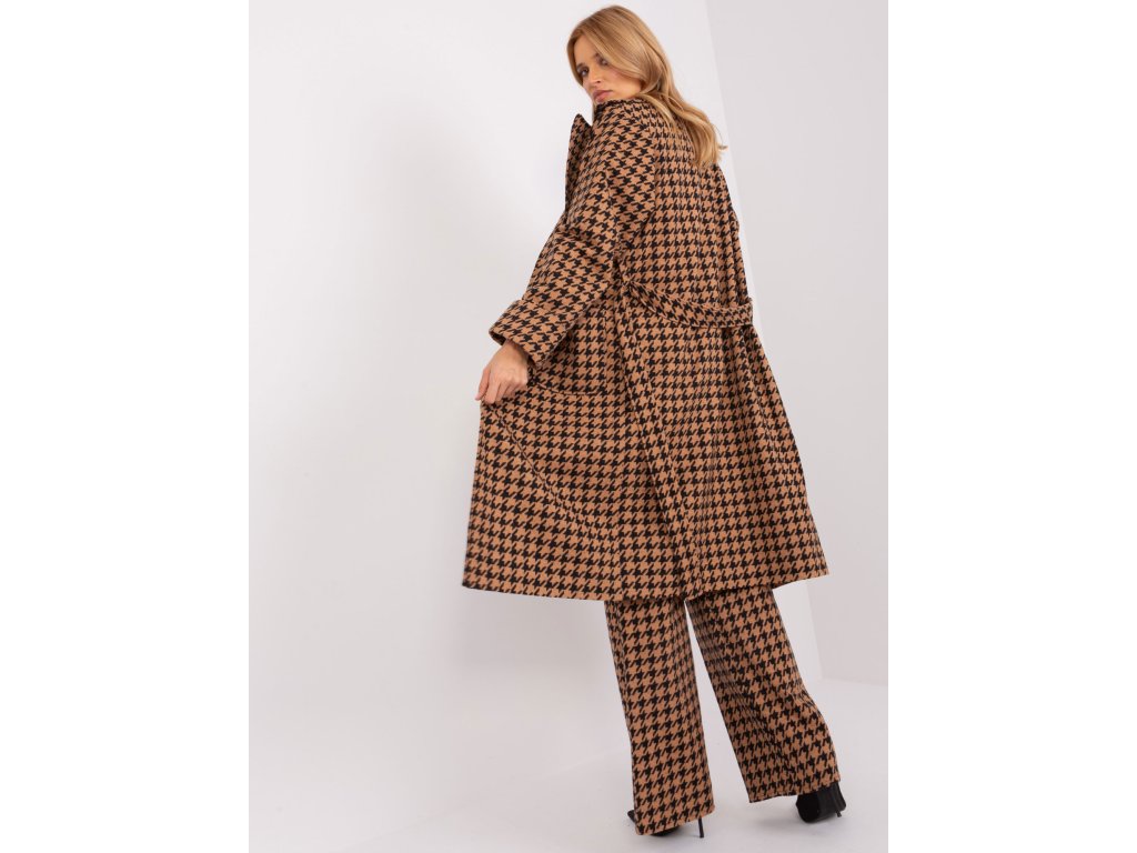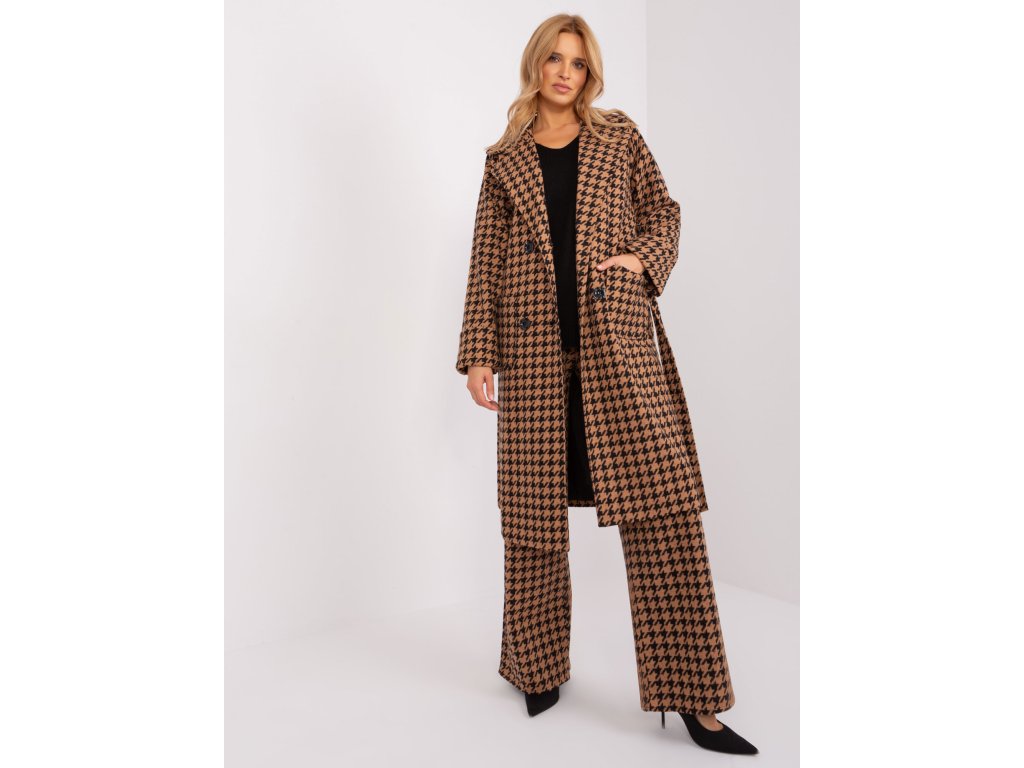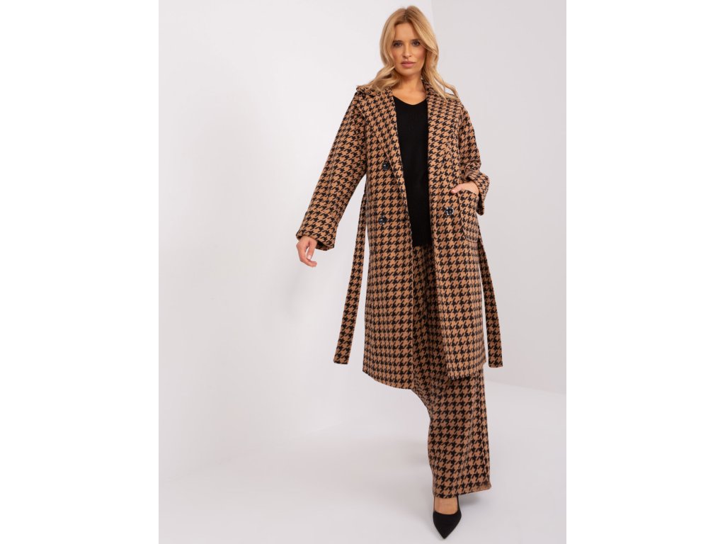 Dlouhý kabát v barvě camel-black s páskem