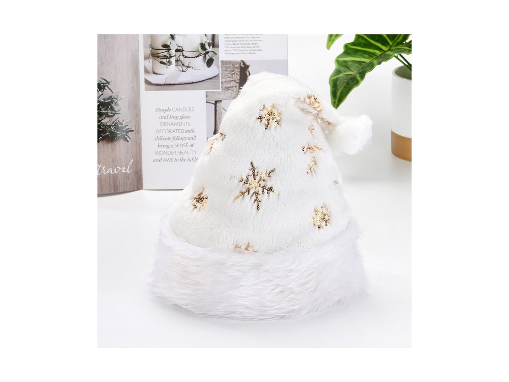 Čepice SVATÉHO MIKULÁŠE se sněhovými vločkami 40x28 cm BÍLO-ZLATÁDoplňkové parametry