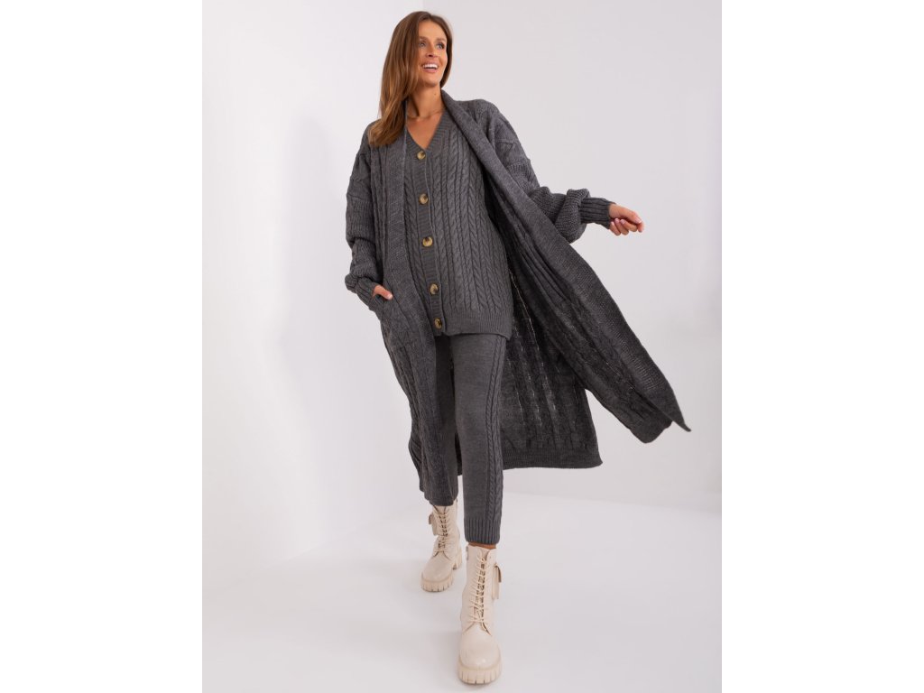 Tmavě šedý kardigan s nafouknutými rukávy.