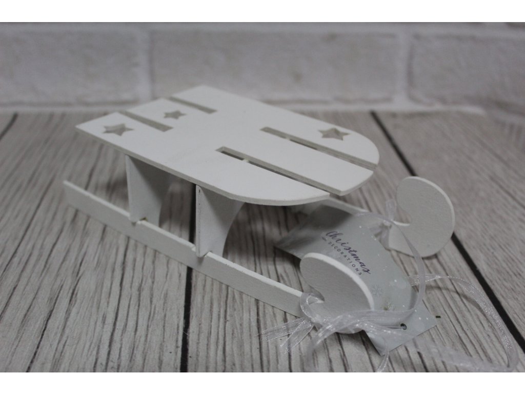 Dekorace ozdobné saně (20x10 cm) - BÍLÉ