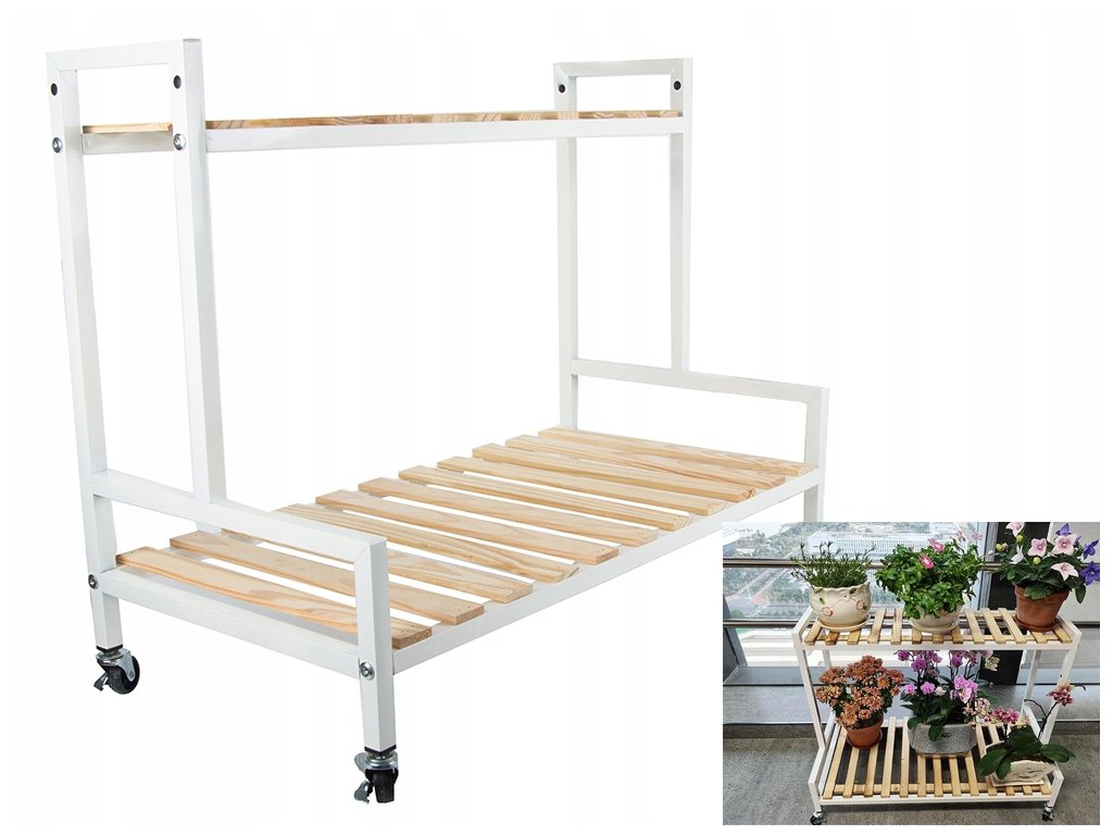 DŘEVĚNÝ KVĚTINÁČ DVOUPATROVÝ REGÁL NA KOLEČKÁCH TERASA