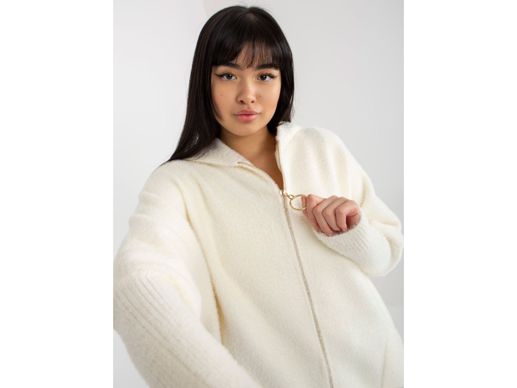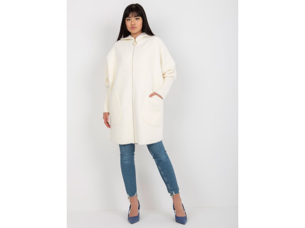 Dámský kabát z alpaka v barvě ecru s kapsami a kapucí