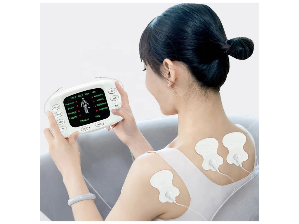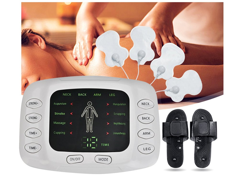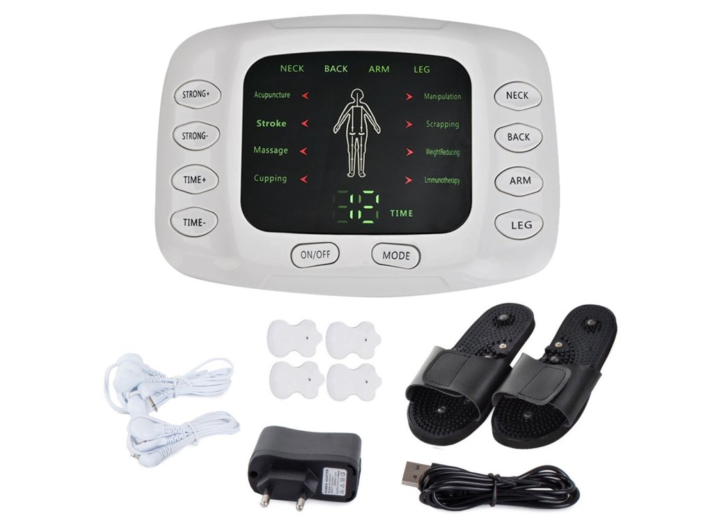 Elektrostimulátormá režimy intenzity v rozmezí 1-15 a režimy trvání masáže v rozmezí 5-30 minut. ------ Součástí sady je pár žabek, které slouží jako elektrody pro chodidla, takže můžete masírovat unavená chodidla po náročném dni v práci.