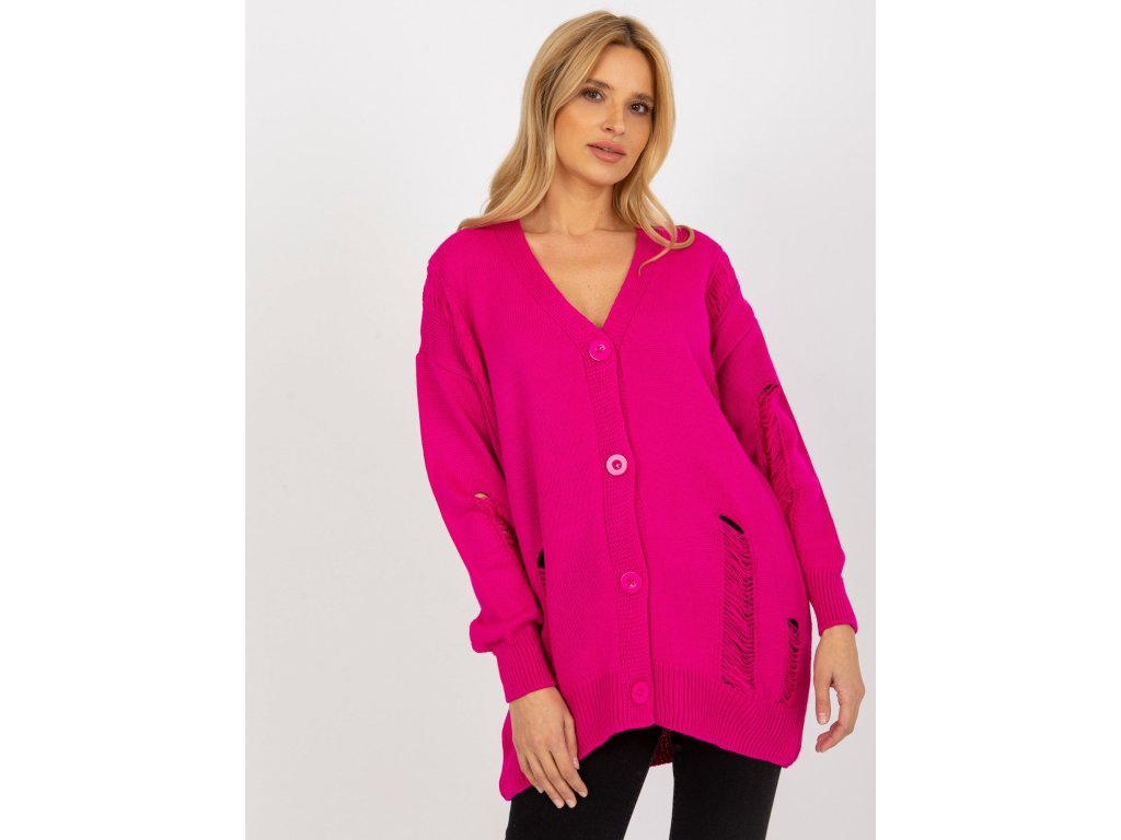 Fuchsiový oversized kardigan s otvory RUE PARIS.