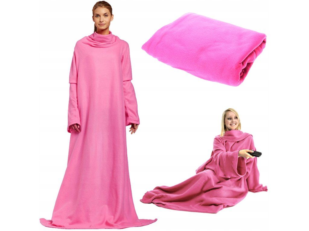 ☑️ Tovární nová deka s rukávy v růžové barvě.