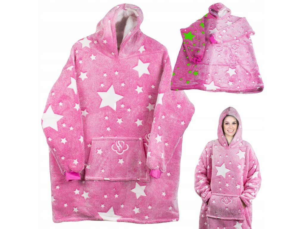 Hřejivá mikinová deka XXL, růžová svíticí ve tmě