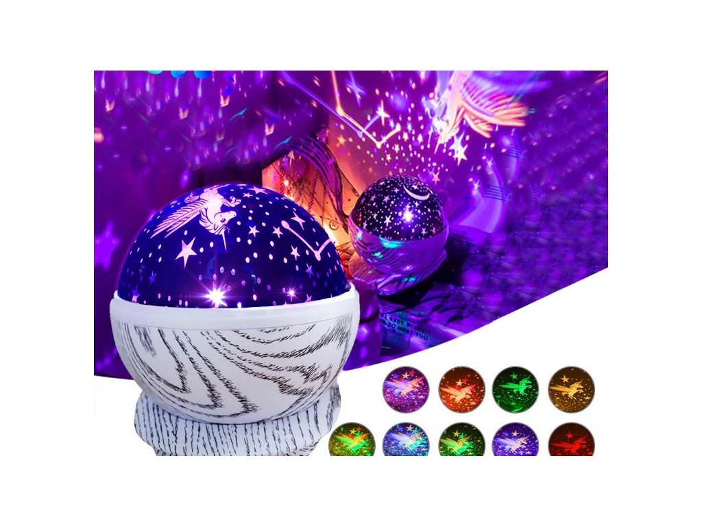 Lampa vytváří úžasné vzory na stěnách a oknech. Dokonale reprodukuje hvězdnou a bezmračnou oblohu s létajícím jednorožcem.