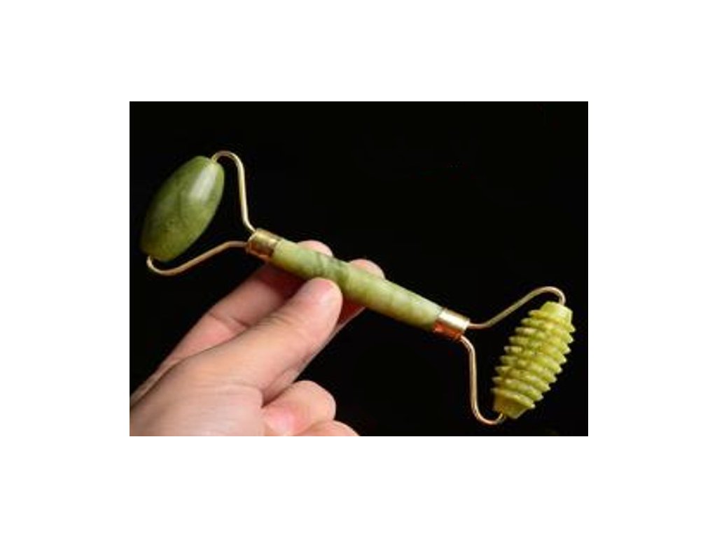 Jade Roller - masážní přístroj na obličej s vroubkovaným a hladkým válečkem