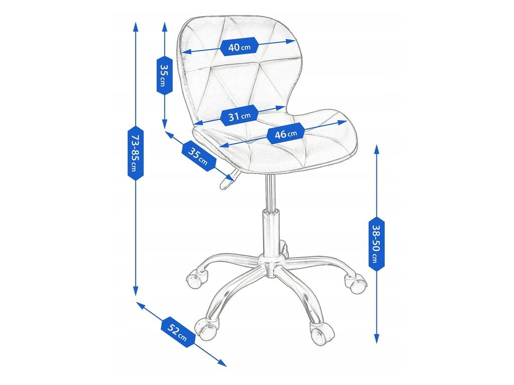 Židle má po stranách sedák čalouněný ekokůží se zajímavými, vykrojenými tvary. Pětipaprsková základna s malými kolečky poskytuje skvělou stabilitu a chrání povrch před poškrábáním. Židle má páku, který umožňuje nastavit výšku sedáku požadovaným potřebám.