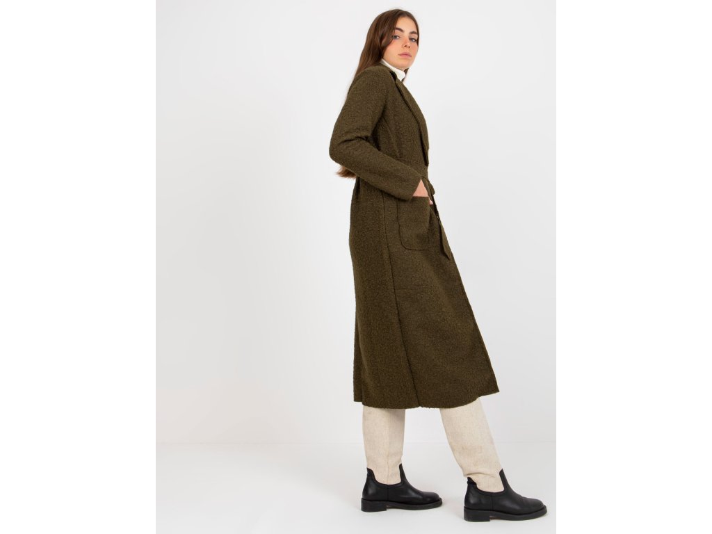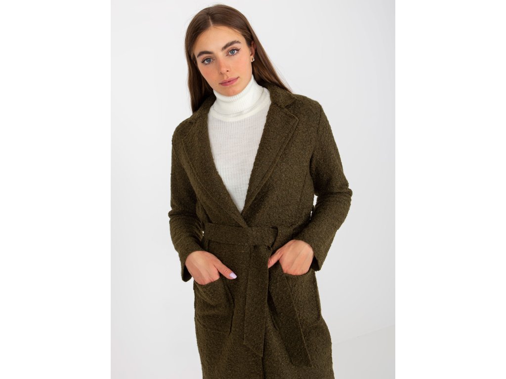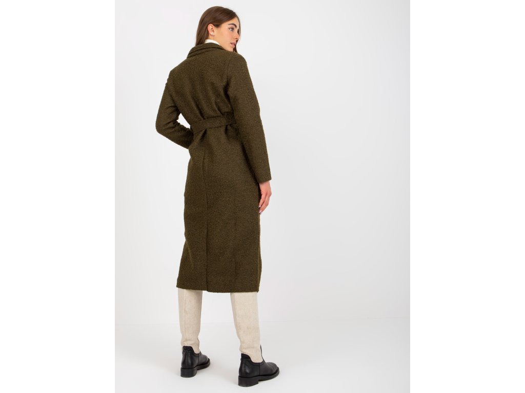 Khaki plyšový maxi kabát s páskem Merve OCH BELLA