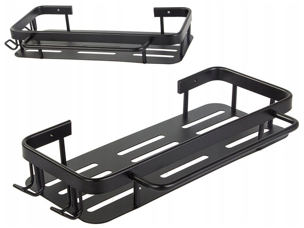 Koupelnová polička s háčky, kov KOVOVÁ ČERNÁ