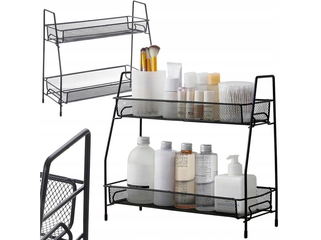 V koupelně se organizér bude skvěle hodit k ukládání kosmetiky, parfémů, doplňků k líčení a dalších hygienických potřeb. Díky jeho dvoupatrové konstrukci můžete snadno uspořádat všechny produkty a mít je vždy po ruce. Kovová konstrukce je odolná vůči vlhkosti, což zaručuje dlouhodobé používání bez obav z koroze.
