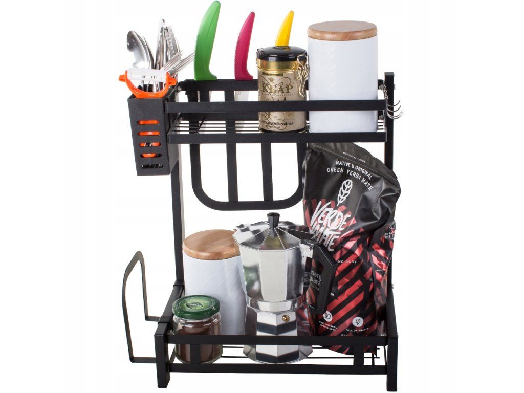 Kuchyňský organizér je vyroben z vysoce kvalitního kovu s práškovým nástřikem. Je odolný proti poškození vlhkostí vznikající při skladování mokrého nádobí. Stabilní konstrukce umožňuje na organizér umístit i těžší předměty.