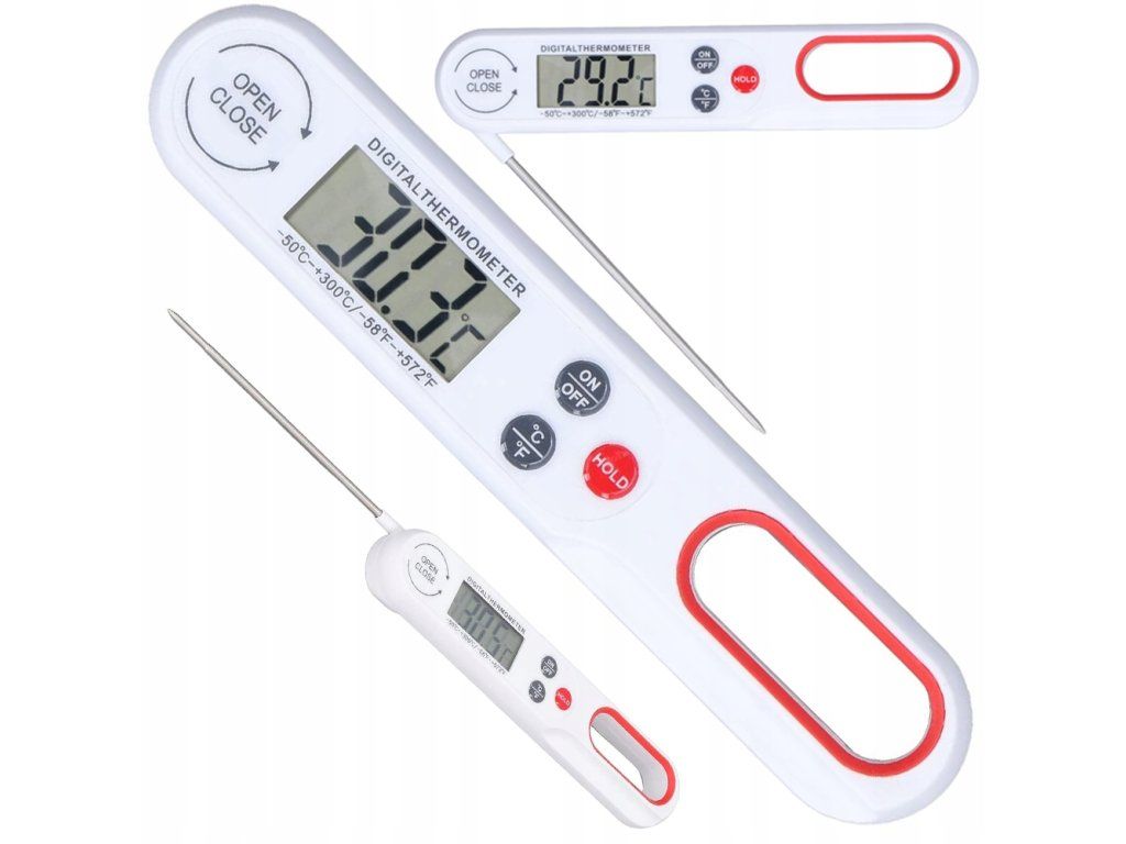 Kuchyňský teploměr sonda digitální do 300°C, skládací, bílý