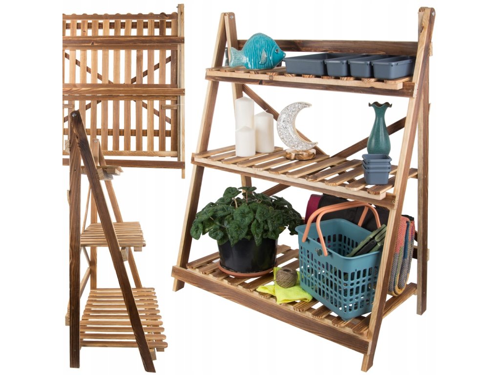 DŘEVĚNÝ VÍCEÚROVŇOVÝ KVĚTINOVÝ STOJAN / POLICE - STYLOVÝ A FUNKČNÍ DEKORATIVNÍ PRVEK