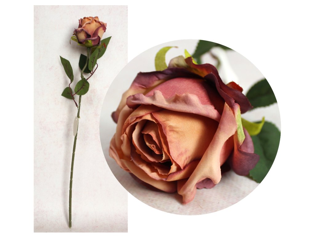 Jednoduchý květ RŮŽE výška 51 cm květ 8 cm RŮŽOVĚ-BROSKVOVÁ tmaváDoplňkové parametry