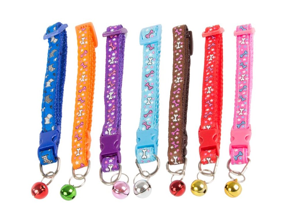 Látkový obojek pro psy a kočky se zvonkem, 32 cm - mix barev