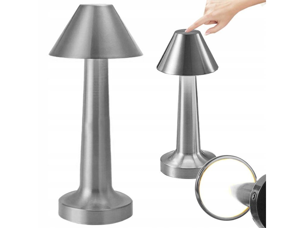 LED stolní lampa dotyková, bezdrátová, stříbrná