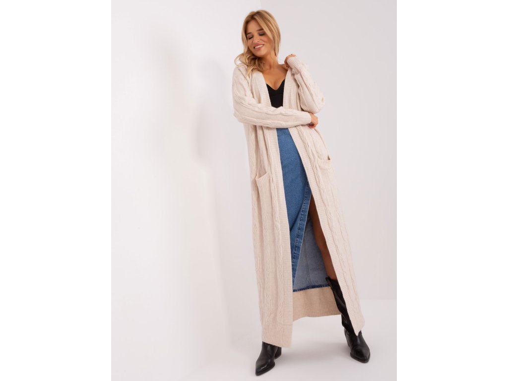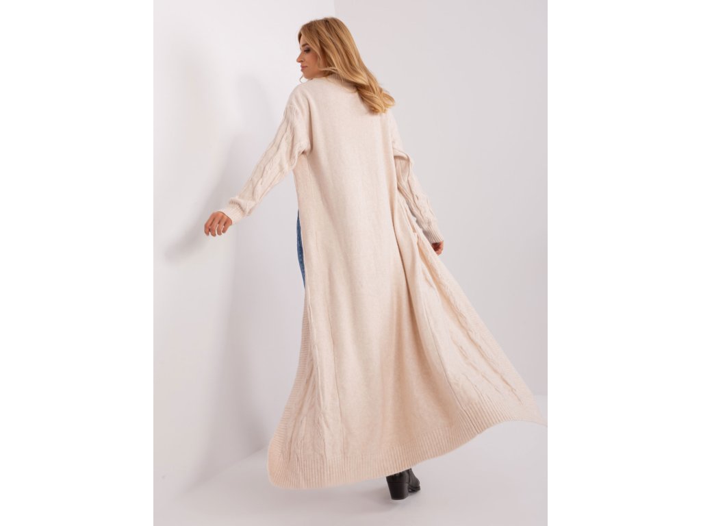 .Rozměry kardiganu ve velikosti one size měřené na rovné ploše: šířka pod pažemi – 70 cm, délka rukávu – 68 cm, celková délka – 145 cm.