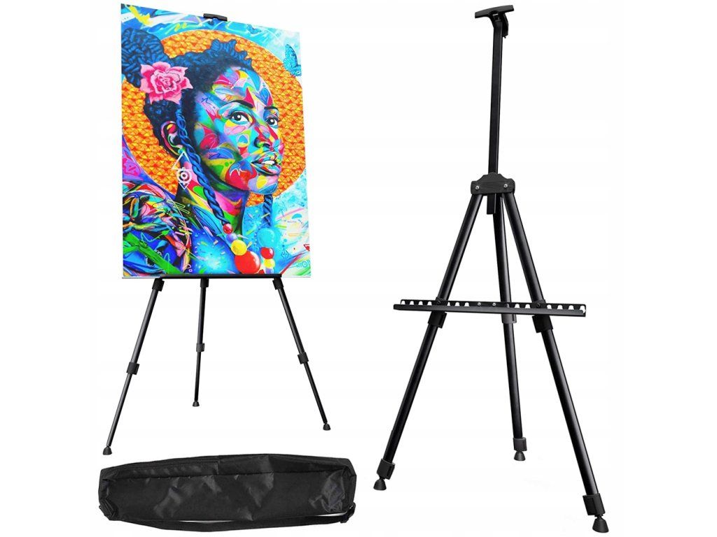 Tento lehkýa stabilní malířský stojan je vyroben z hliníku. Má třísegmentové nastavitelné nohy, takže na stojan můžeme připevnit jakýkoli rám obrazu. Nohy jsou opatřeny samonivelačními protiskluzovými prvky, takže stojan je chráněn proti pádu při práci a poškrábání podlahy.