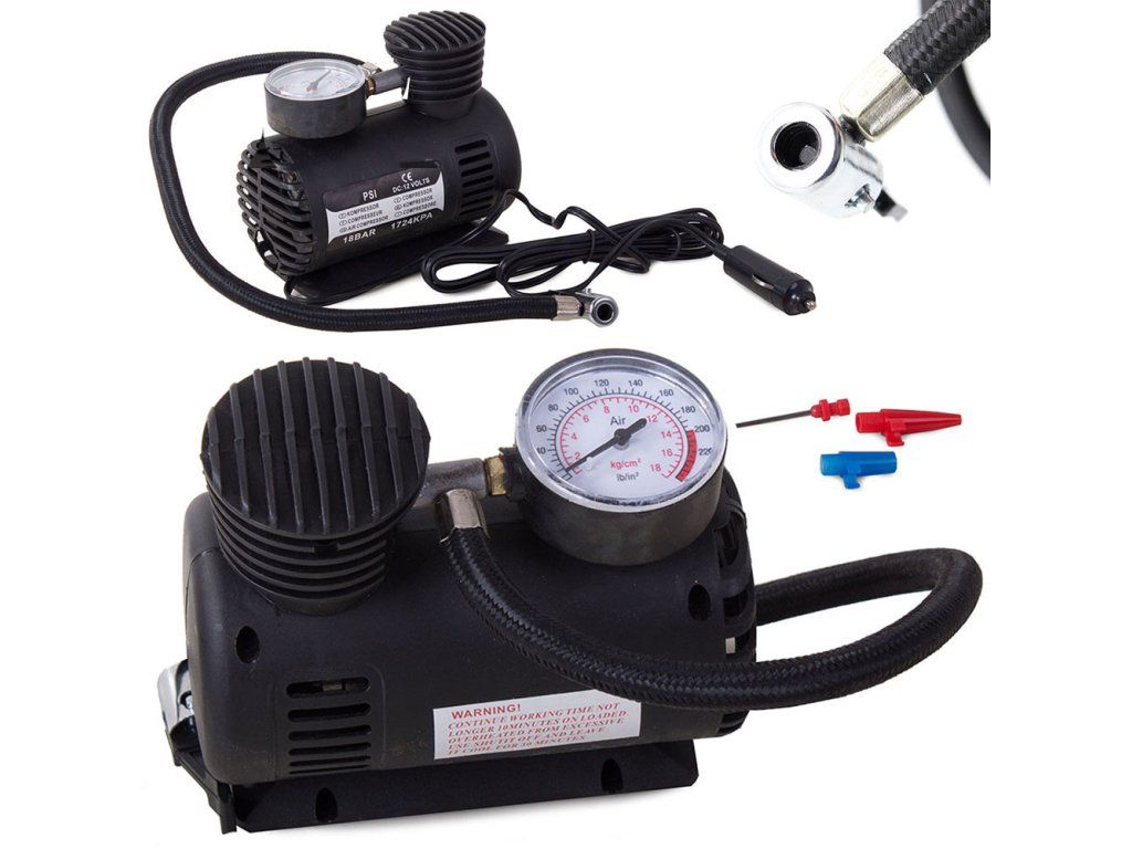 ☑️ Kompresor s hadicí, zástrčka do zapalovače, tlakoměr.
