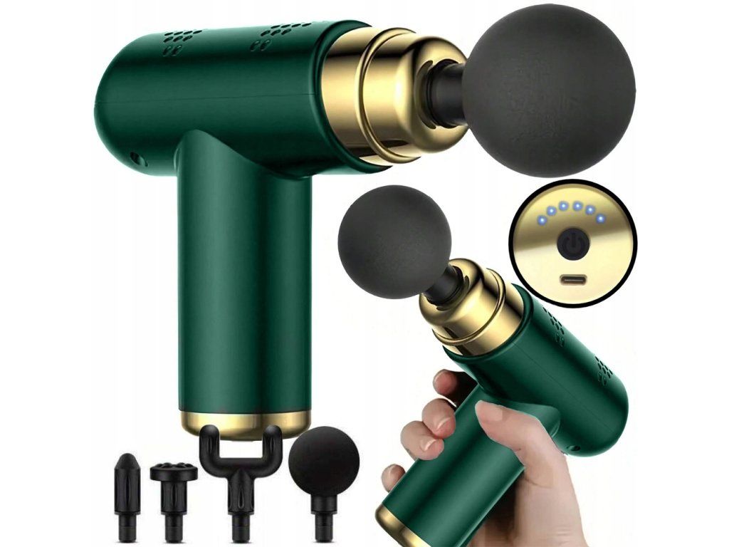 Mini masážní pistole výkonná se 4 nástavci, zelená