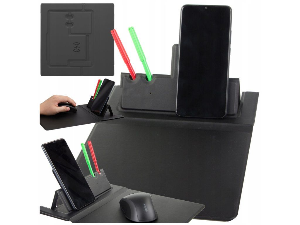 Multifunkční podložka pod myš, bezdrátová nabíječka a organizér