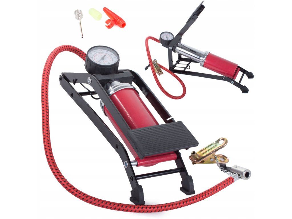 Nožní pumpa do auta je nepostradatelným zařízením na cestách nebo při výletech. Je určena k huštění všech druhů pneumatik automobilů , motocyklůa jízdních kol, míčů, matrací a mnoha dalších. Umožňují to přiložené speciální hroty a jednoválcový píst, který je účinný a velmi efektivní.