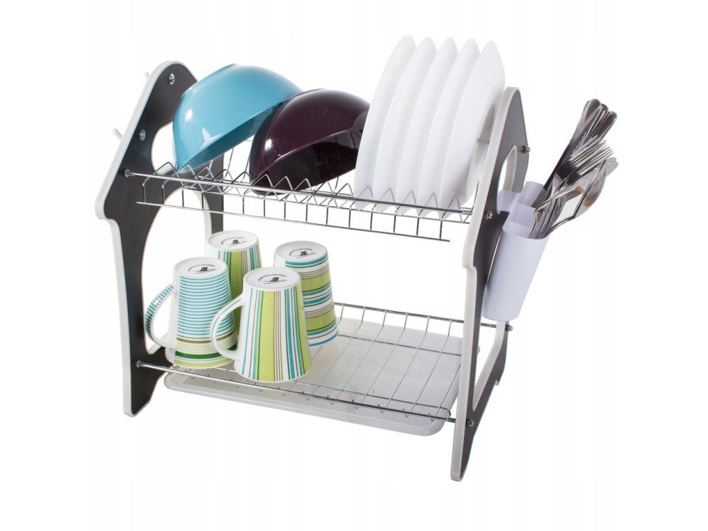 Stojící sušička nádobí je nezbytnou součástí vybavení každé kuchyně. Je velmi praktický, pojme velké množství talířů, misek nebo sklenic a má 2 úrovně sušení.