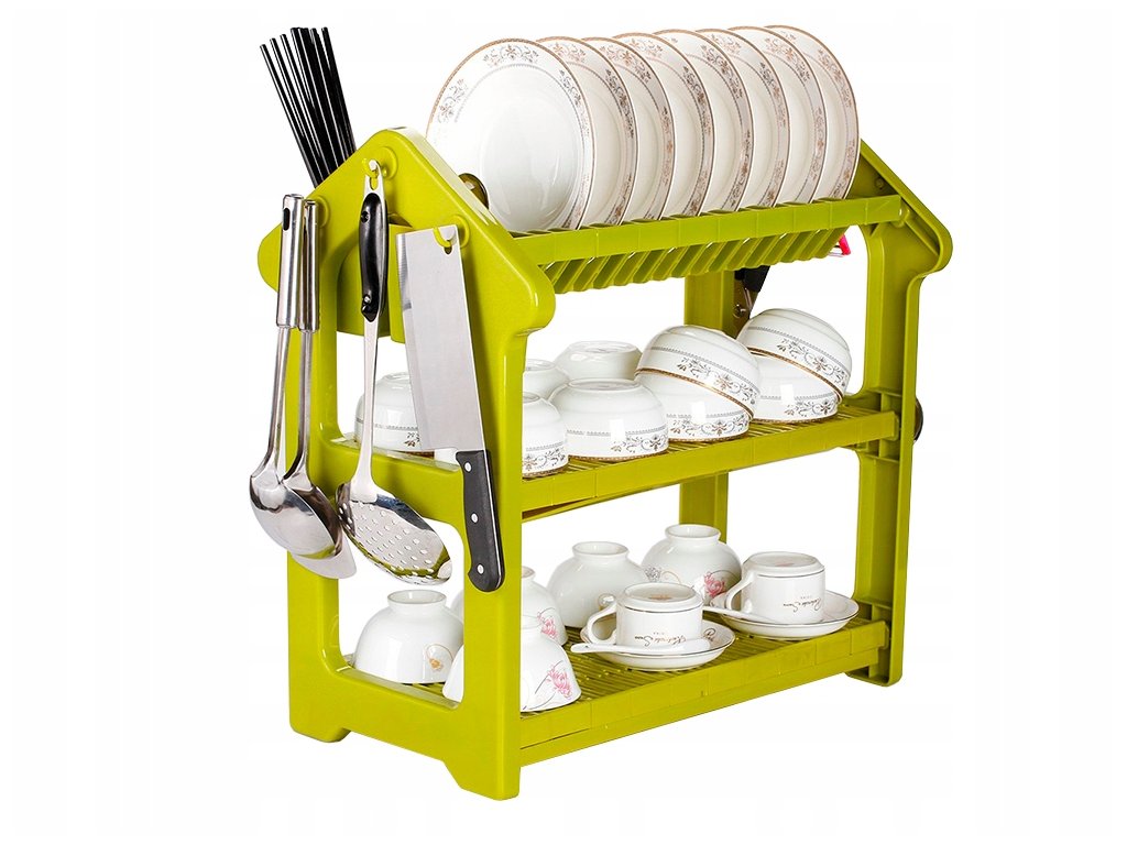 Stojící sušička nádobí je nezbytnou součástí vybavení každé kuchyně. Je velmi praktický, pojme velké množství talířů, misek a sklenic a má 3 úrovně sušení.