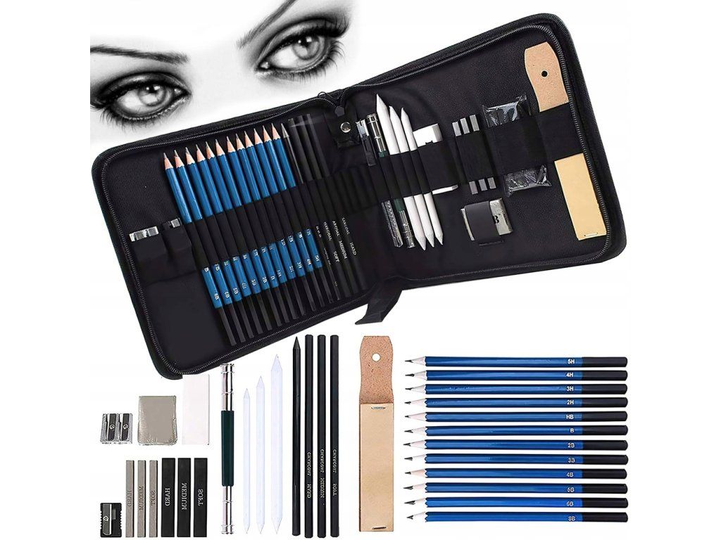 Profesionální sada tužek a kreslicího příslušenství, která je nutností pro amatérské i profesionální umělce.