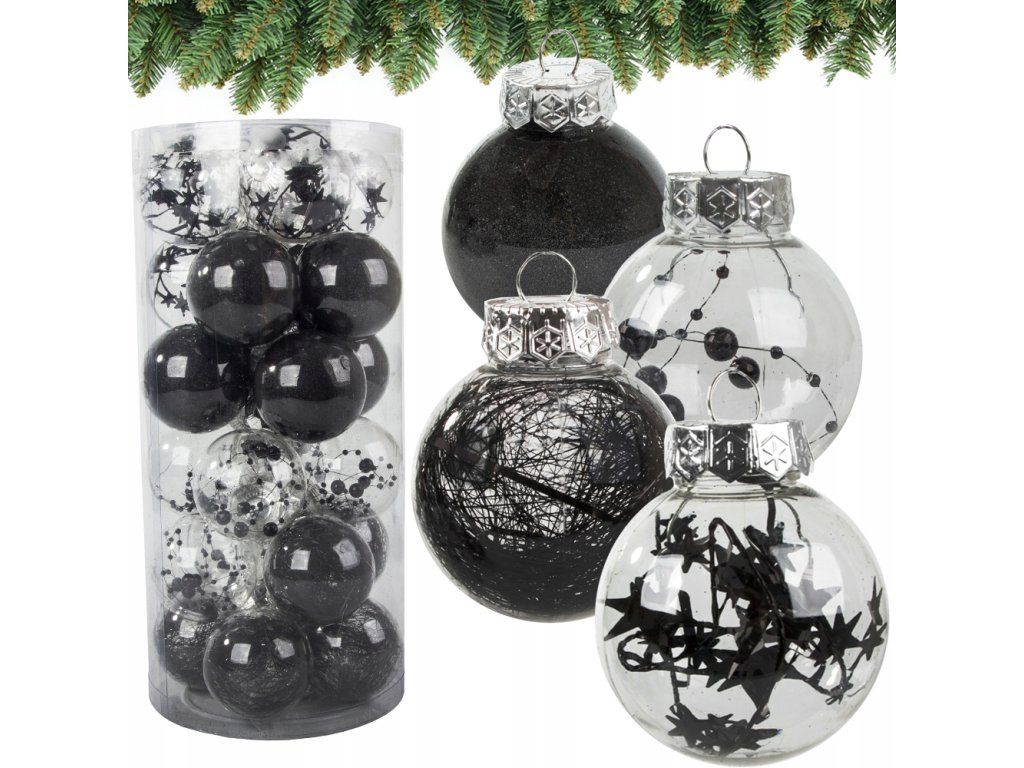 Sada vánočních ozdob 6cm, 24 ks, černá průhledná