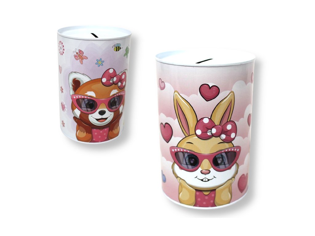 Pokladnička, plechová krabička ZVÍŘÁTKA RŮŽOVÁ 15x10 cm MIX VZORŮ