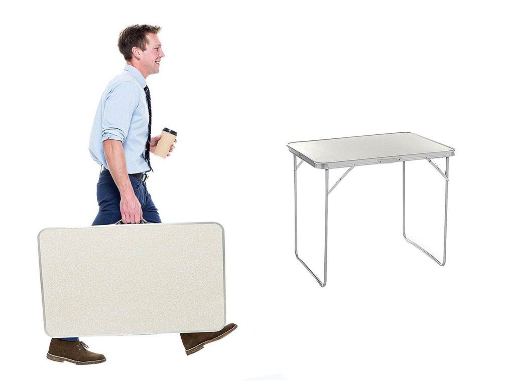 Ve složeném stavu má stůl podobu praktického kufříku s rukojetí, takže se snadno vejde do kufru nebo skříně. Ideální na víkendové výlety a spontánní výlety - rozložíte ho během několika sekund!