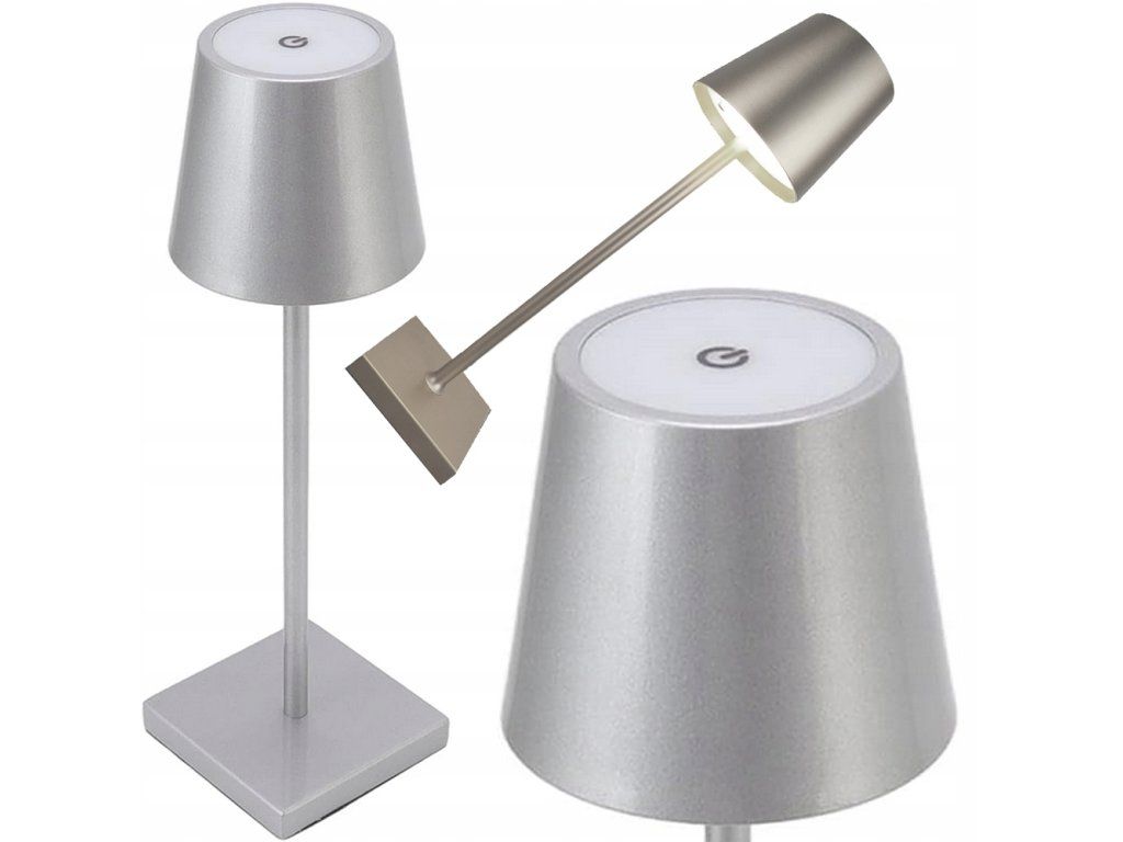 Stolní dotyková lampa, 3 stupně osvětlení, bezdrátová USB, stříbrná