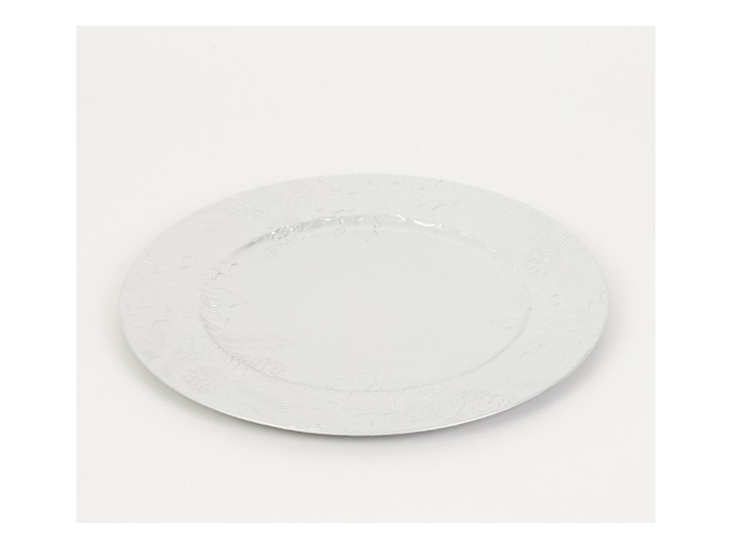 Talíř, podtalíř, dekorativní plastový podnos, lesklý, VYRAŽENÉ VÁNOČNÍ VĚTVIČKY, stříbrný, 33 cm