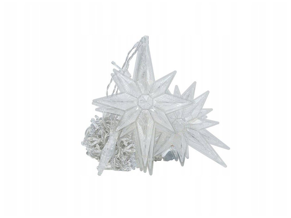 Závěs se skládá ze 6 velkých hvězd a 6 menších hvězd. Mezi hvězdami je vzdálenost 27 cm. Délka celého světla je 5 m včetně 2m napájecího kabelu. Světla barevně svítí.