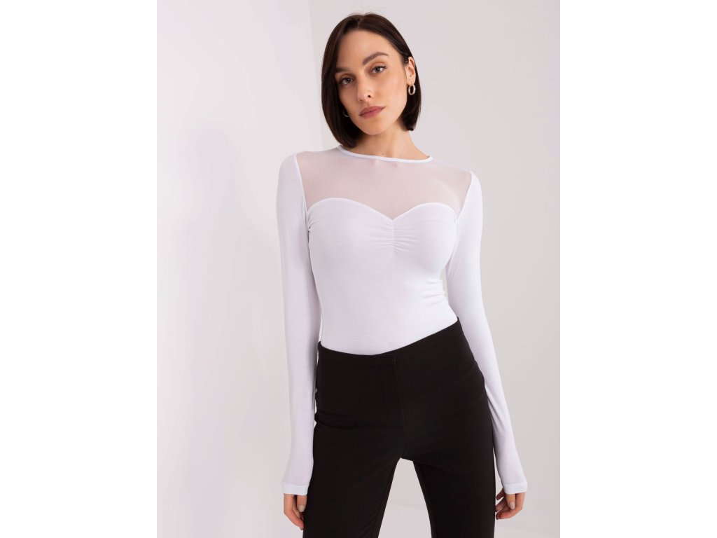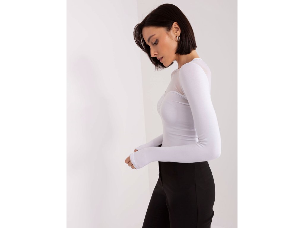 Bílá základní halenka s dlouhými rukávy a kulatým výstřihem BASIC FEEL GOOD.