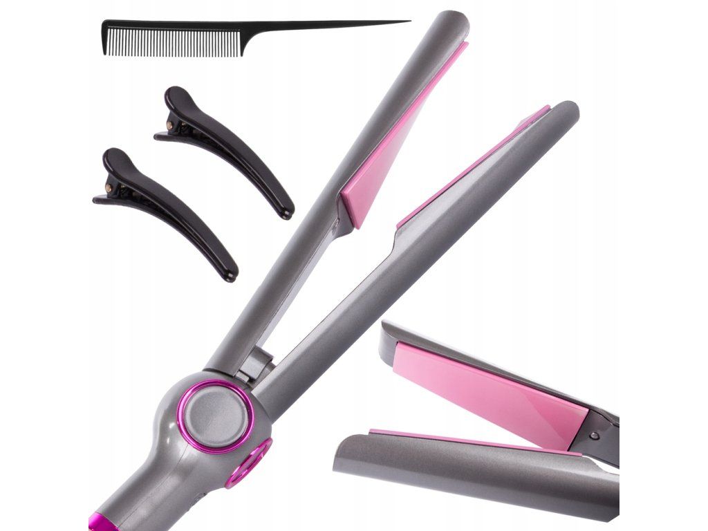 Žehlička na vlasy keramická + hřeben, 2x klip