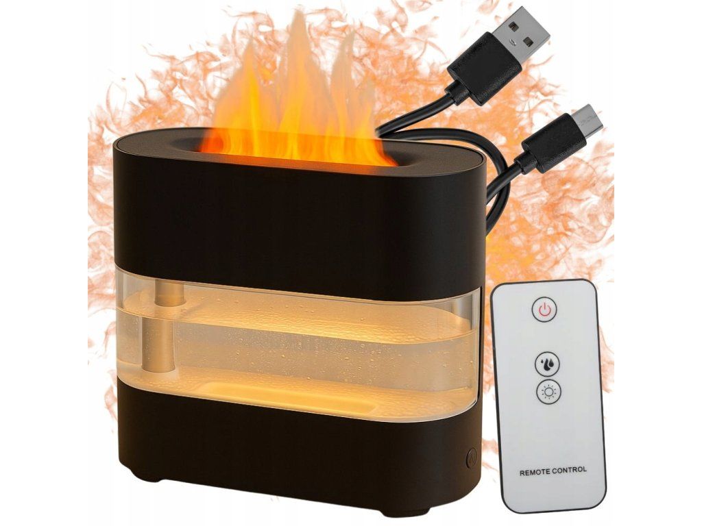 Zvlhčovač vzduchu LED s efektem plamenů, aromaterapie, dálkové ovládání